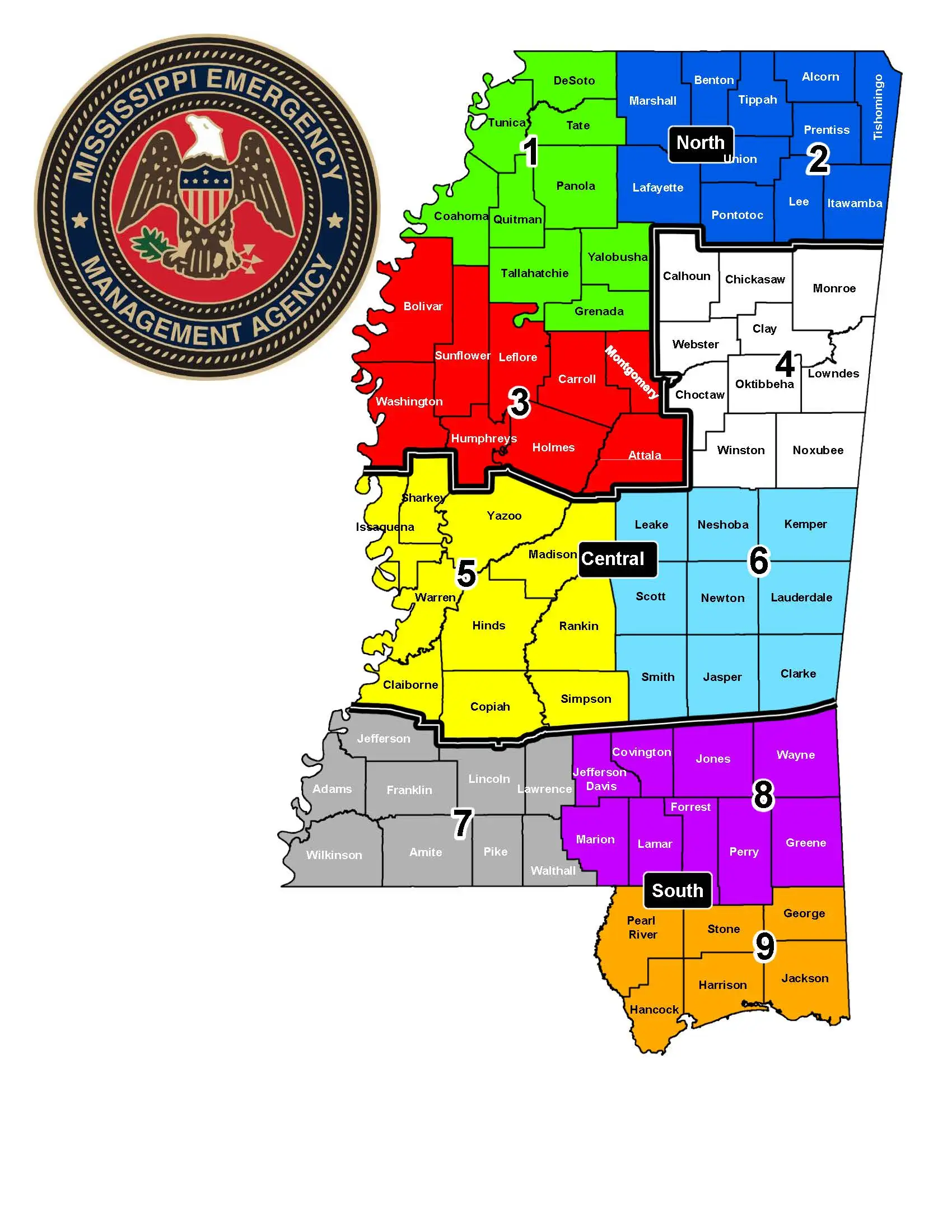 MEMA has districts throughout the state with an area coordinator assigned to each district as a liaison between the county emergency operations centers and MEMA.